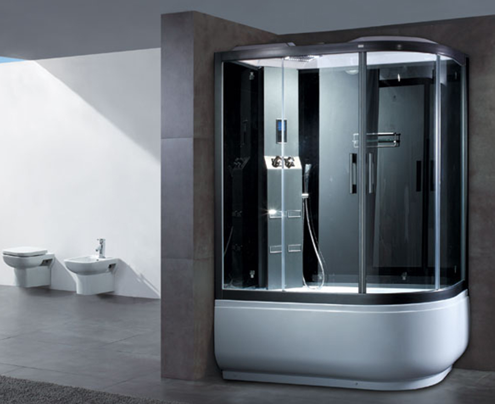 Hệ thống tiện ích đi kèm: FM radio, Loa, Sen tay, Sen trần, Đèn trần, Quạt thông gió, Kệ đựng đồ, Gương soi, Thanh treo khăn tắm , Hệ thống thu nước ở đáy.